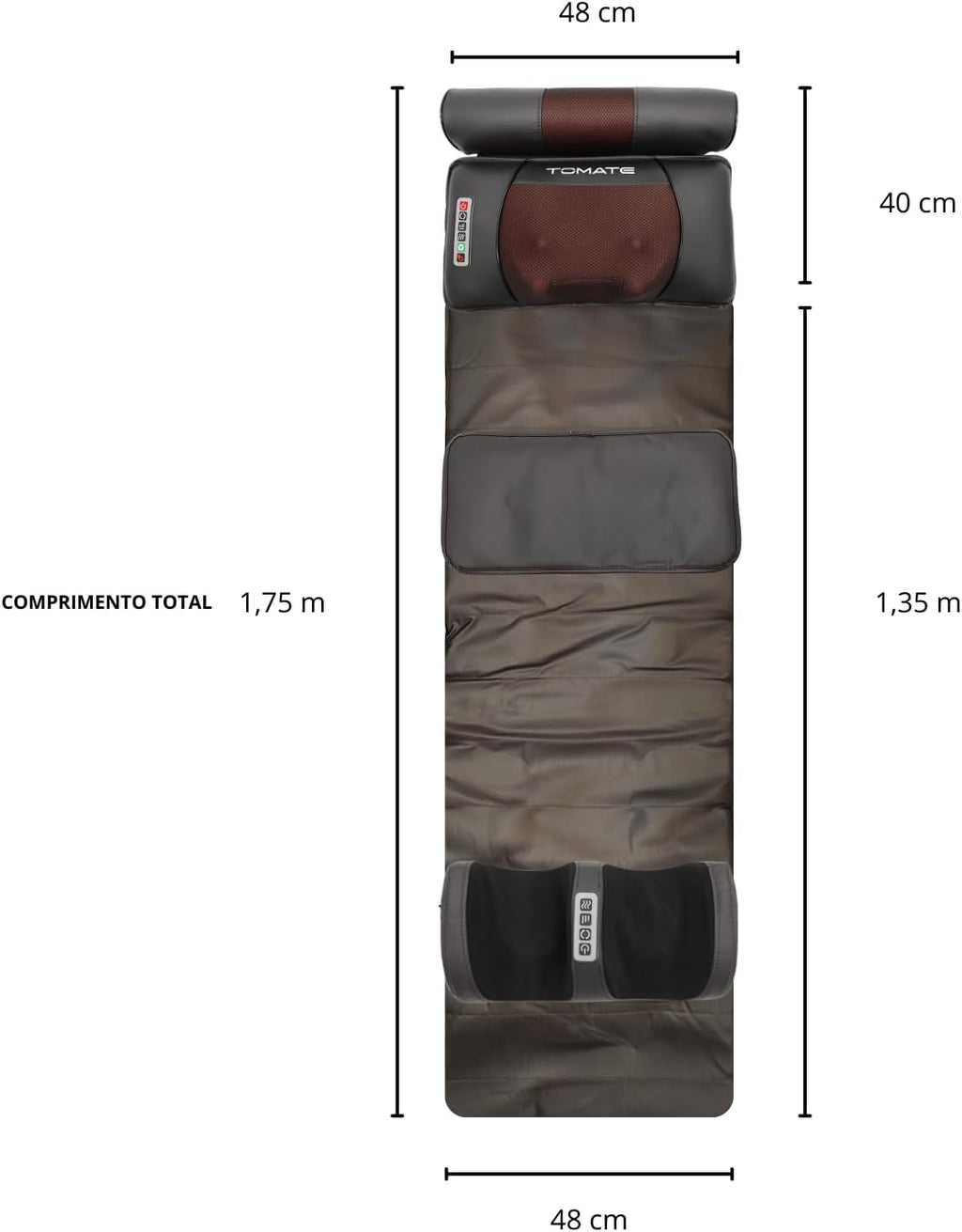 Massageia ao mesmo tempo pescoço, cabeça, costas, lombar, coxas e panturrilhas, trazendo alívio e conforto.